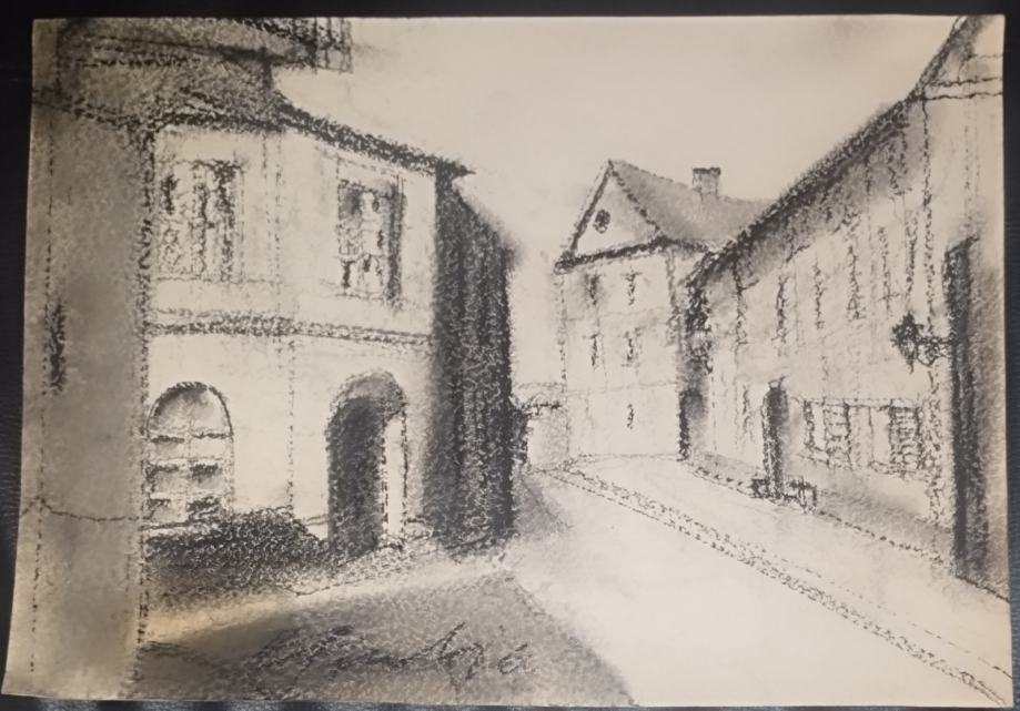Akademski slikar. Motiv - Zagreb. Ugljen, dimenzije 40x29cm