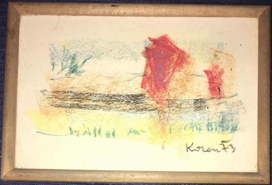 Pastel čuvenog karlovačkog slikara Franje Korena iz 1973. Uokvireno i ostakljeno. Dimenzije s okvirom su 15x11cm.