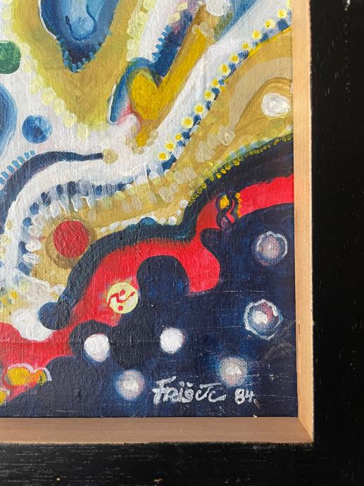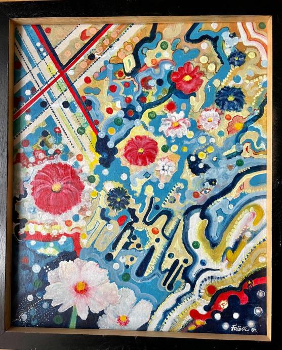 FRIŠČIĆ IVO, ULJE PLATNO, 60X50CM, "CVJETOVI U GEOMETRIJI 2", "84.g. UOKVIRENA.