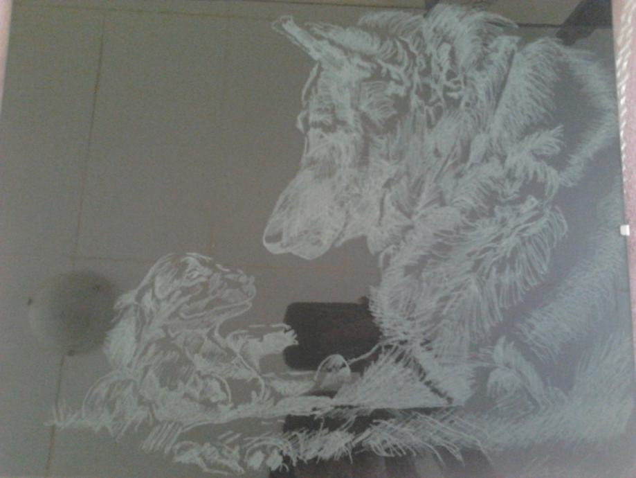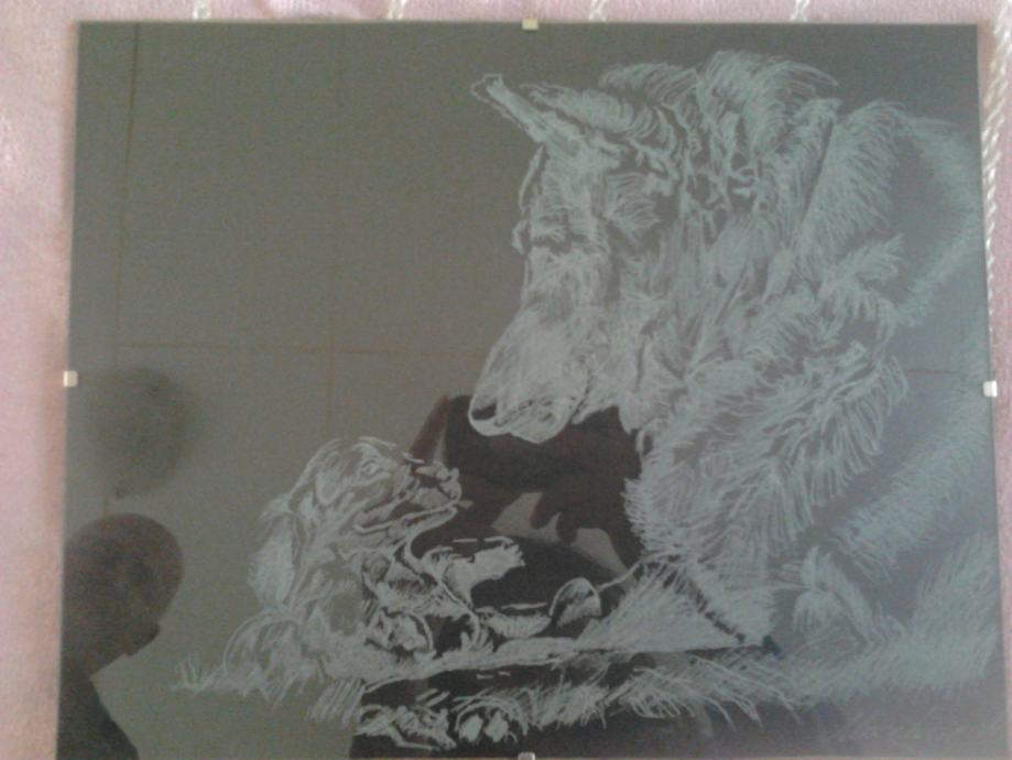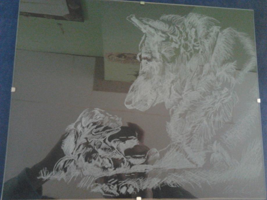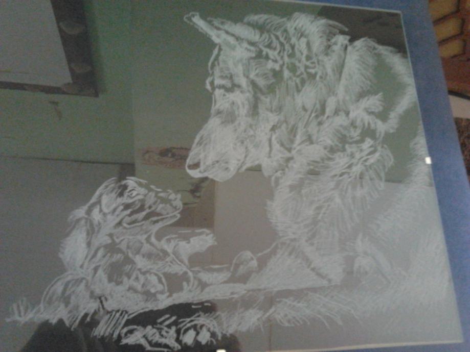 Ja sam graviro,ručni rad.Staklo 24x30cm.Na slici je njemački ovčar i štene.Idealno nekome za rođendanski poklon.Poštarina nije uključena u cijenu.Zvat na broj 0958226590