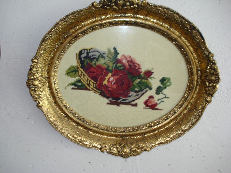 Goblen ruže u košari sa baroknim okvirom veličina bez okvira 28x22cm.