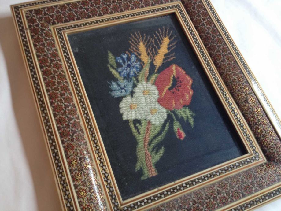 Goblen u ukrasnom drvenom okviru sa sedefom 26x22 cm