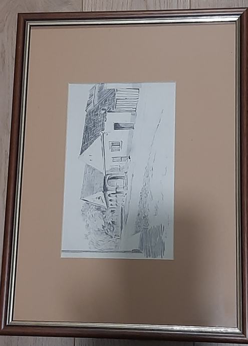 Prodajem crtež osječkog slikara Jovana Gojkovića iz 1935. g. Crtež prikazuje osječki Donji grad. Odlično je očuvan dimenzije su 17,5x28,5 cm. Crtež je uramljen i stavljen je novi paspartu. Cijena 400 E (četiri stotine)