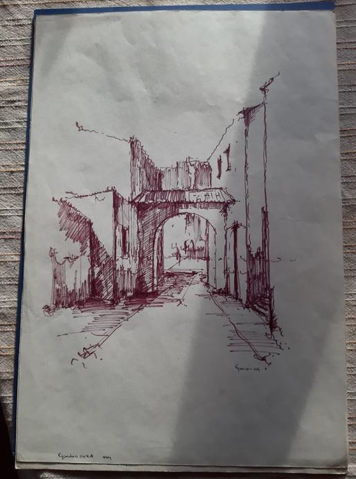 Gordan Ivica Primorski pejsaž tuš na papiru 1984 28 X 42 cm