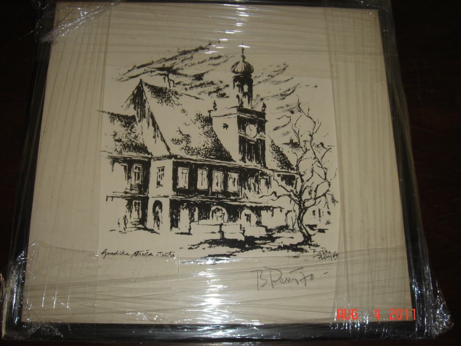 grafika osiječkog slikara Boška PEŠUNA iz 70 - tih sa motivom
