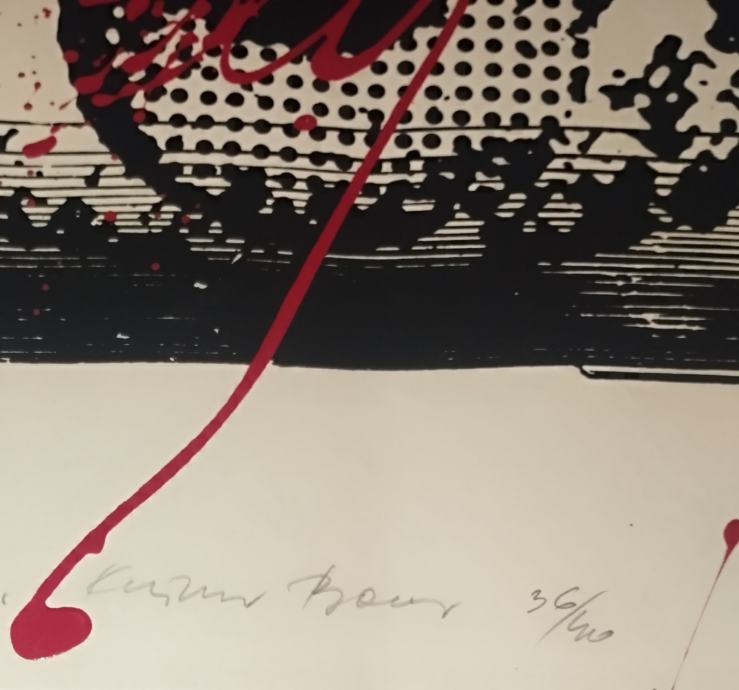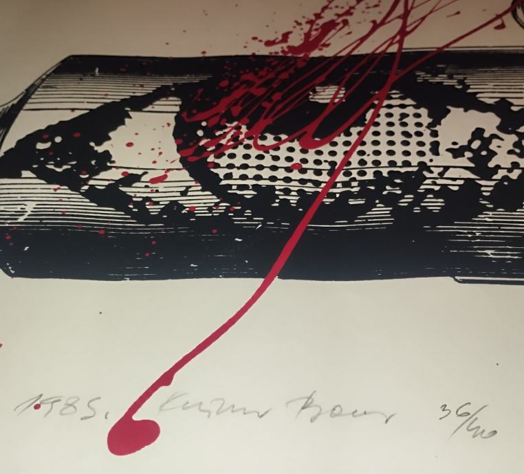 Izvrsna, bojom dorađena, potpisana i numerirana grafika nepoznatog autora. Dimenzije 68x29cm.