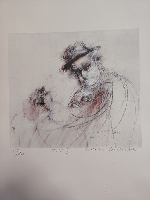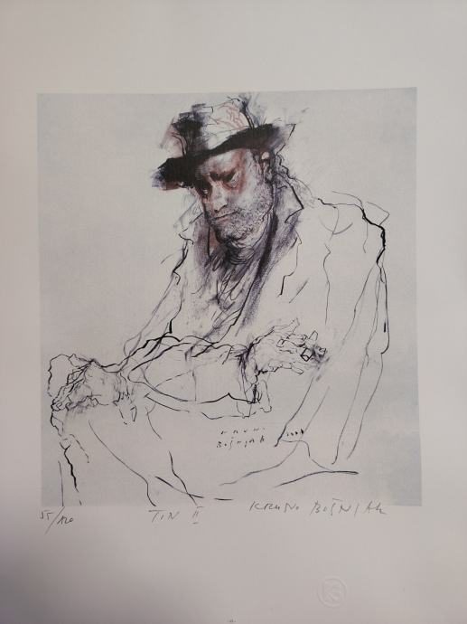 Napravio više javnih spomenika, među kojima se ističu spomenik Tinu Ujeviću, Imotski 1980.GRAFIKA KRUNO BOŠNJAK