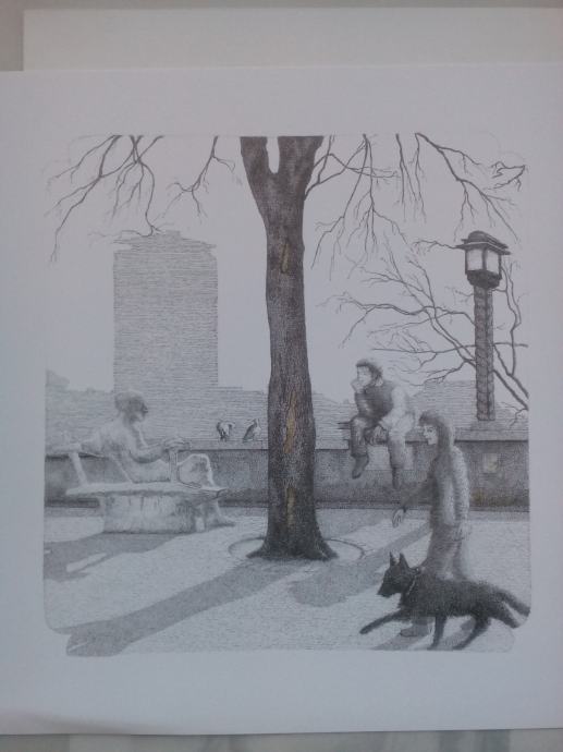 Potpisana grafika "Matoš na Štrosu", nepoznatog autora, iz ciklusa "Zagrebačke vedute '91- '97".