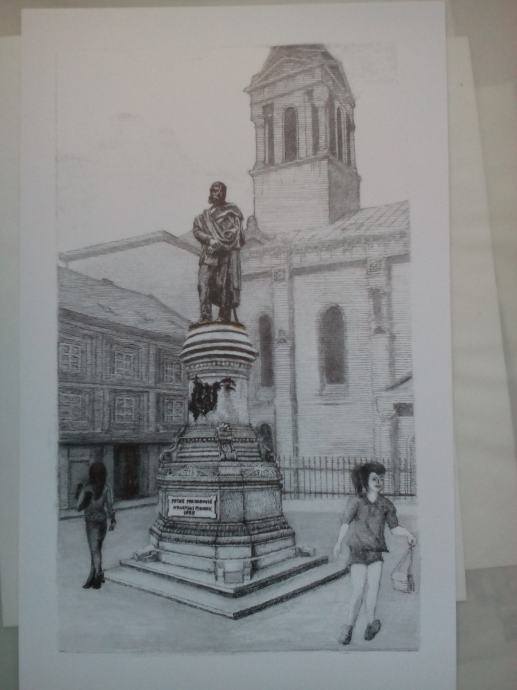 Potpisana grafika "Petar Preradović-Cvjetni", nepoznatog autora iz ciklusa "zagrebačke vedute '91- '97".