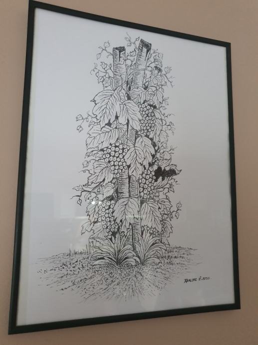Grafika; tehnika tuš i olovka - "Neobrano grožđe" 40x31cm uokvireno
