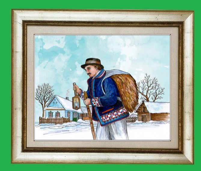 motiv ''Badnjak u Slavonji", autor Josip Vrbić Tataran.