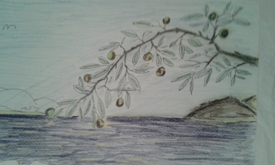 Sliku "Grana masline", olovka u boji na papiru, prodajem. 15 kn. Zagreb. tel: 099/7028 363,