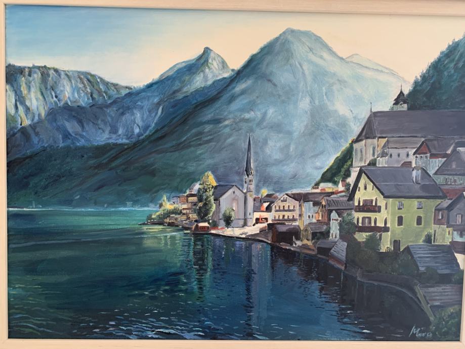 Prodajem umjetničku sliku ulje na platnu,dimenzije 79x50 cm,super okvir.Hallstatt u Austriji.Potpis autora dolje desno.