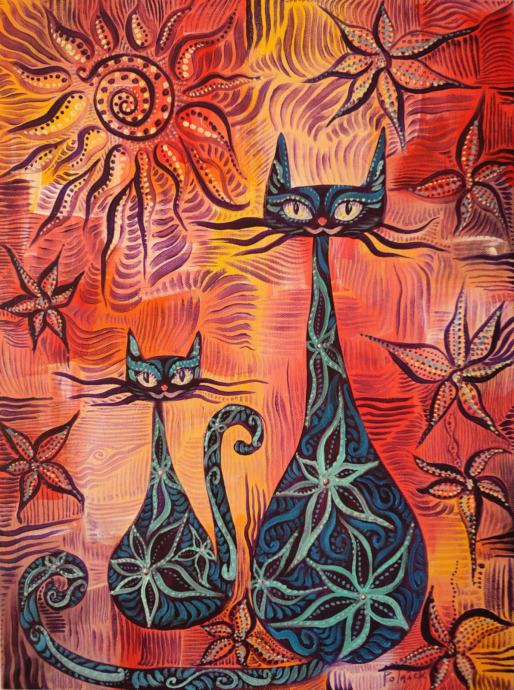 Iz ciklusa ''mačkoslike'', u meditativno-ornamentalnom stilu.