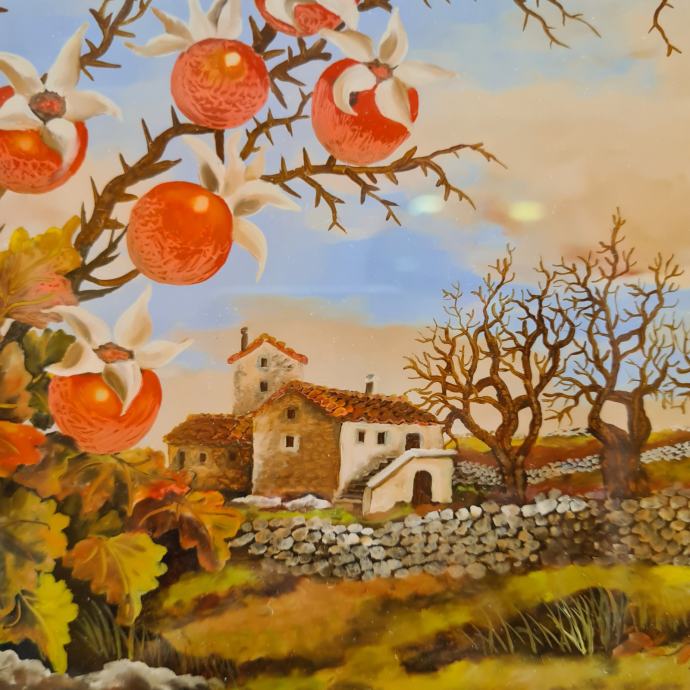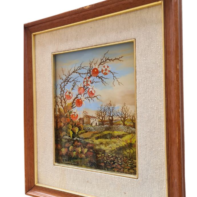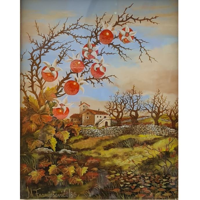 Hrvatska naivna reversna staklena uljana slika, Mira Franješevič