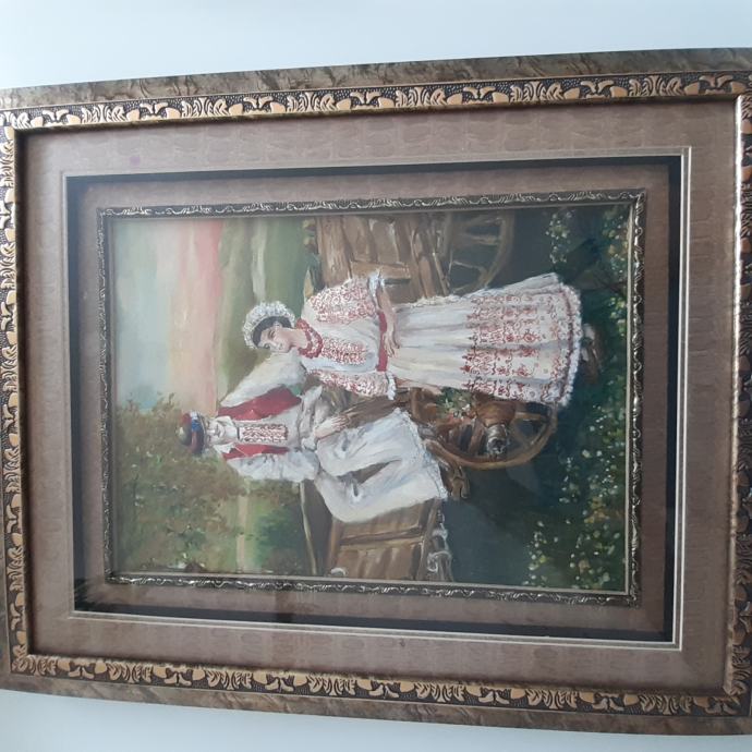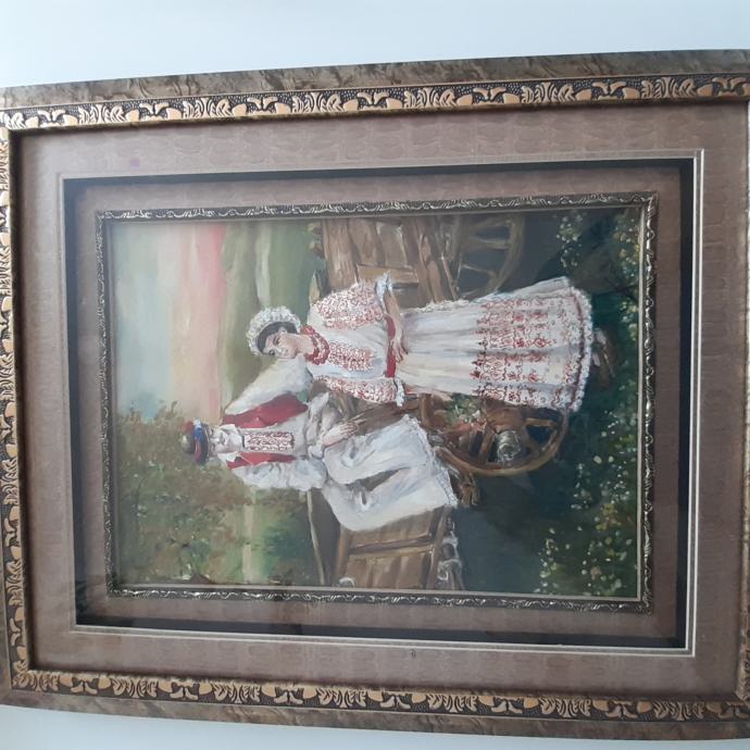 Prodajemo sliku Hrvatska narodna nošnja. Tehnika ulje na platnu, dimenzija slike 25x35 cm, s okvirom 43,5x53,5.