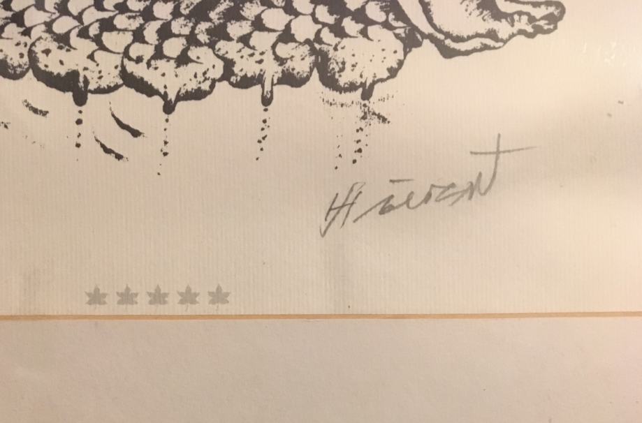 Potpisana grafika čuvenog hrvatskog slikara Hrvoja Šercara. Uokvireno i ostakljeno. Dimenzije s okvirom su 38x30cm.