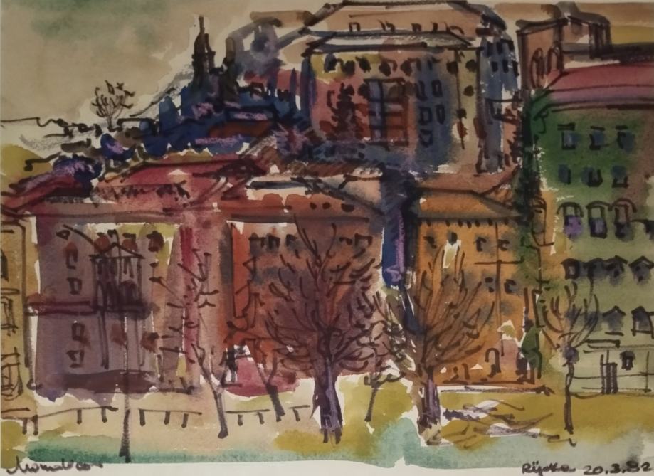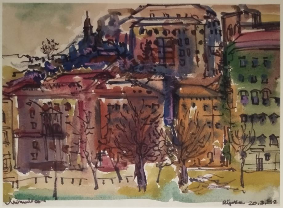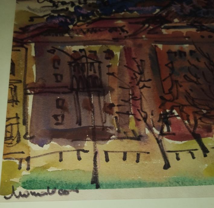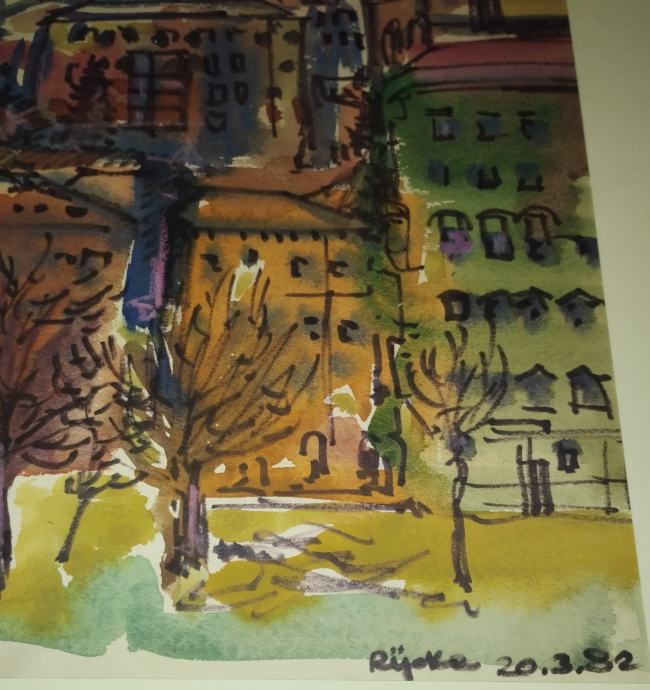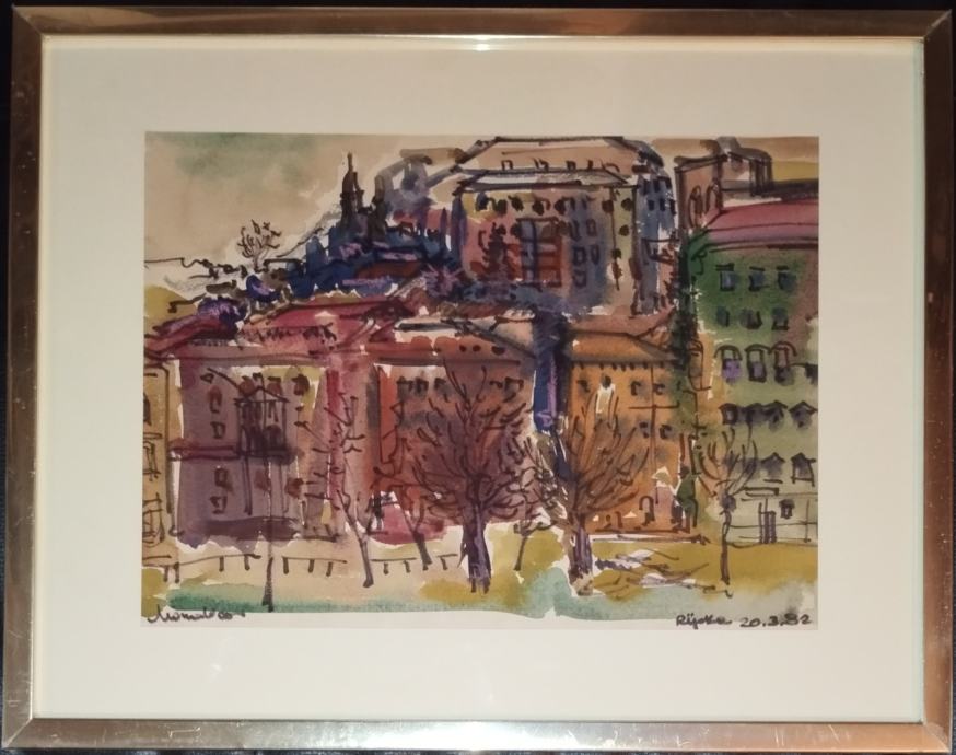 Hrvatski slikar Hugo Mondecar. Motiv je grad Rijeka. Ukupne mjere 47/37cm. Samo slika je 34/25cm
