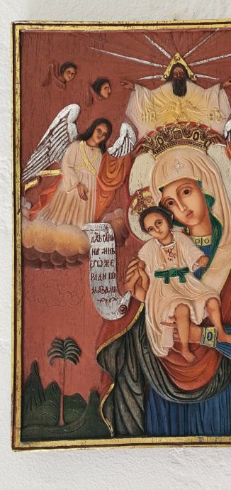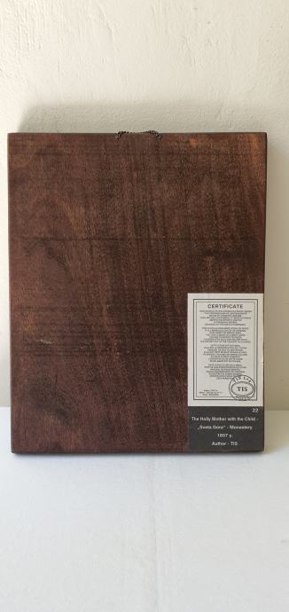 Predivna ručna punio drvo reljefno izrađeno i oslikano izrada vrlo dekorativna iza je certifikat dimenzije 20,4 cm x 28 cm x1,9 cm masivno puno drvo