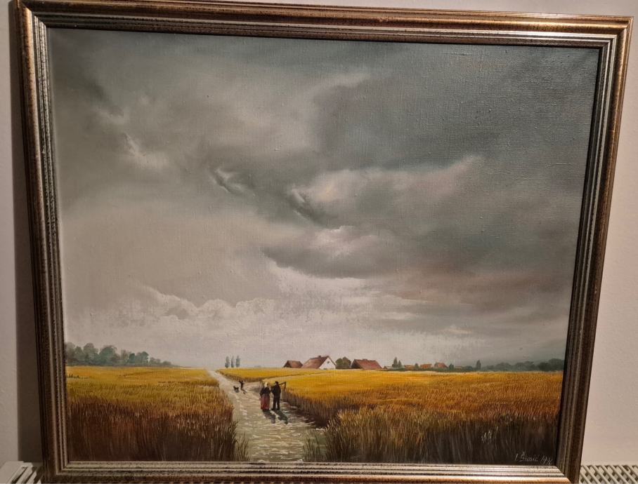 Slika je u dobrom stanju, uredno uokvirena, s jasno vidljivim potpisom i godinom.