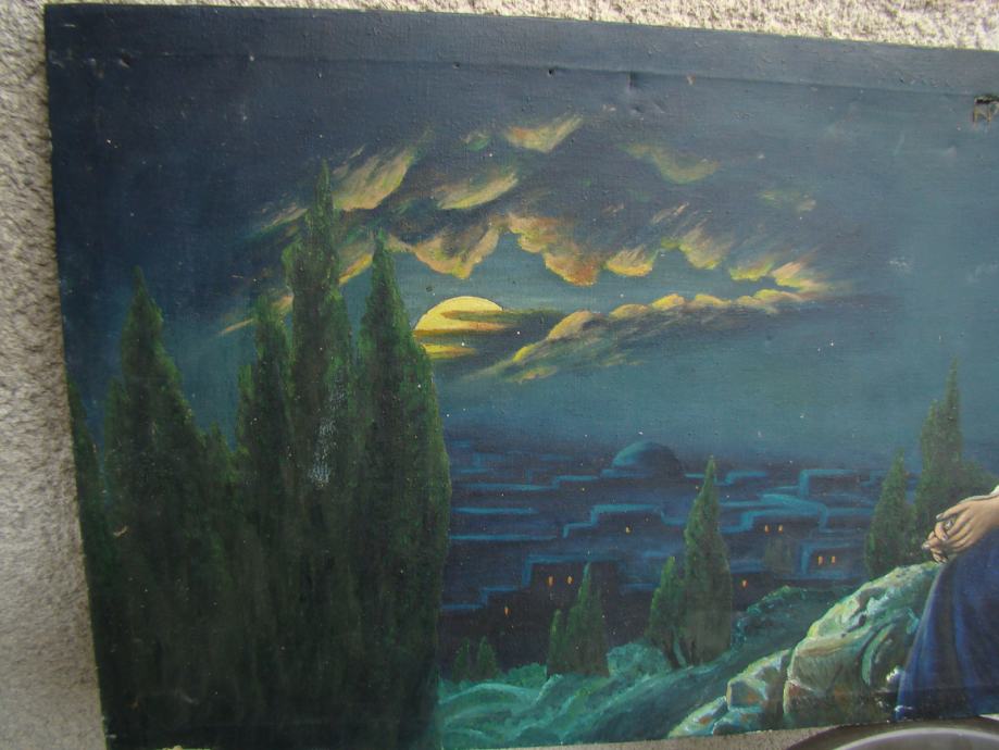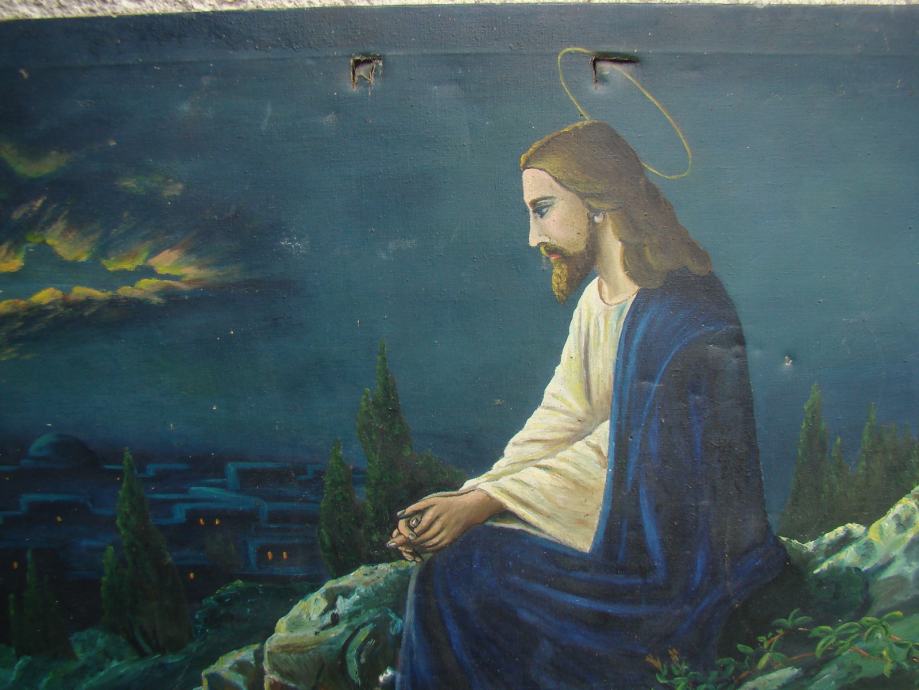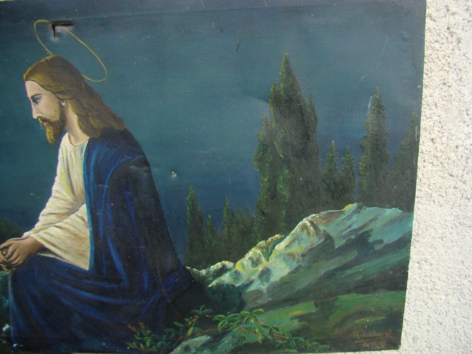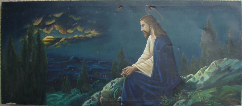 Velikih dimenzija 120 x 50 cm.,stanje je vidljivo na slikama.Potrebno je restauracija, par rupa na platnu.Slika nije reprodukcija nego je rađena prema slici Christ on the Mount of Olives od Josefa Untersbergera (Giovanni)