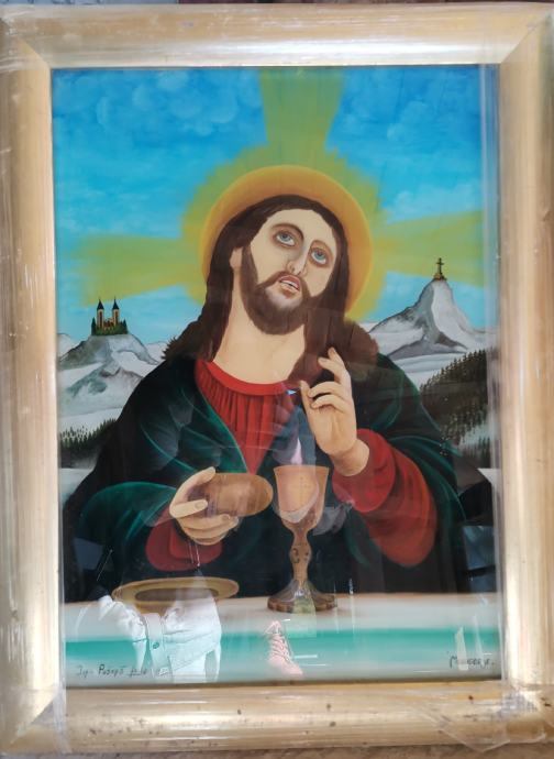 Slika ulje na staklu "Isus tvoj iskupitelj", 35x50cm, autor Marijan Puškaš Atila.
