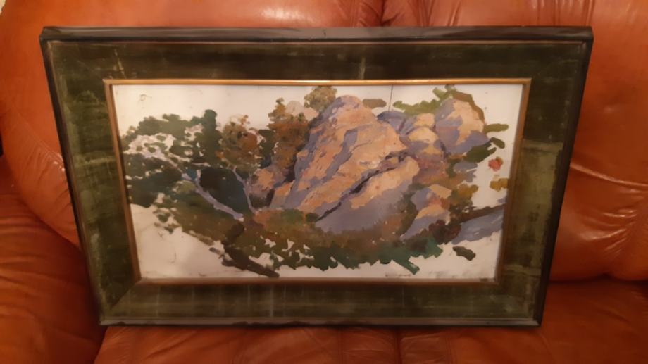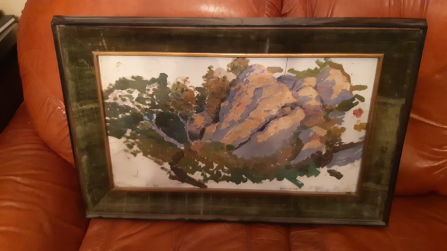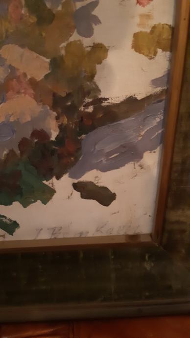 Veliki rad Ivana Benkovića rađen tehnikom ulja na platnu a predstavlja "gromovaču" ili grmlje.Dimenzije slike su 61x33cm sa okvirom 76x48cm