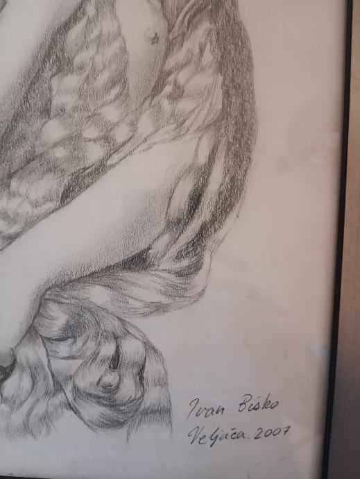 Prodajem portret žene, olovka, slika s okvirom po visini 55cm, širina 40cm, Ivan Biško 2007. Plačanje na račun ili gotovina.