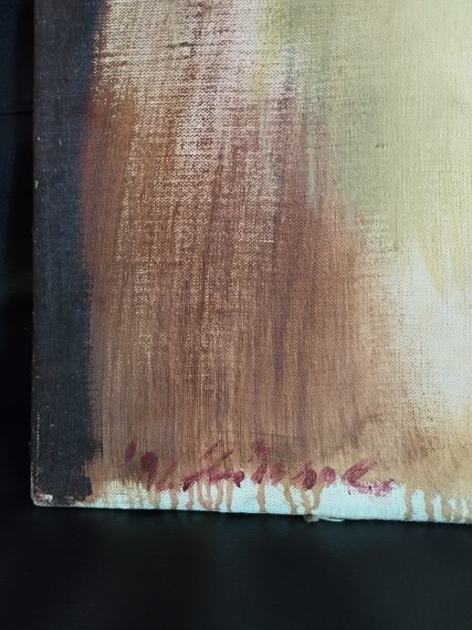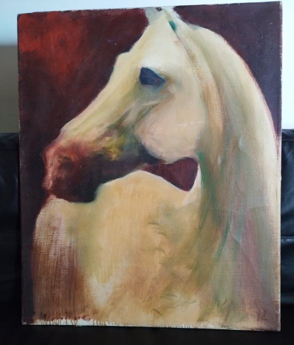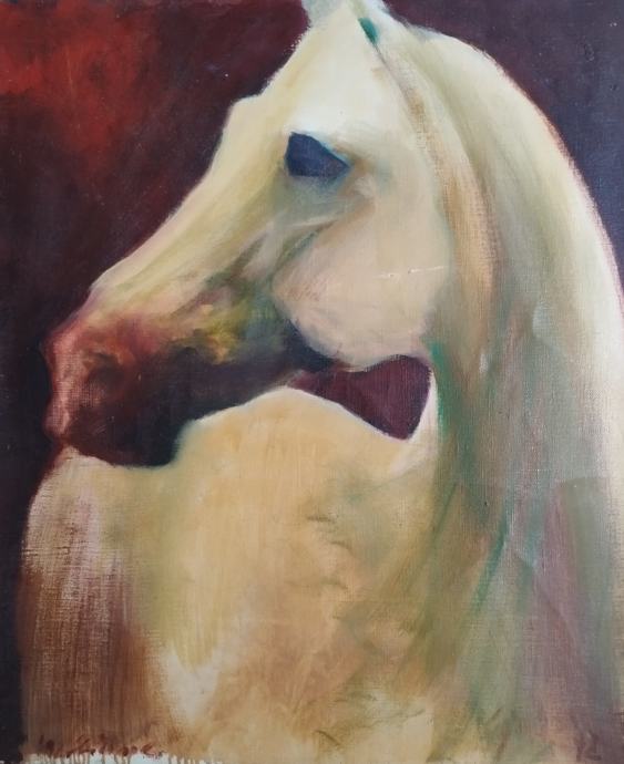 Akademski kipar i slikar iz Vinkovaca. Motiv je konj. Tehnika, ulje na platnu. 73x60cm.