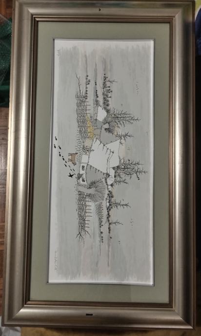 Ivan Lacković - akvarel - tuš sa potpisom autora i vodenim žigom.Dimenzija vanjskog okvira 93x53cm.. unutarnji okvir i sama slika 28x70cm..moguća dostava i dogovor oko cijene