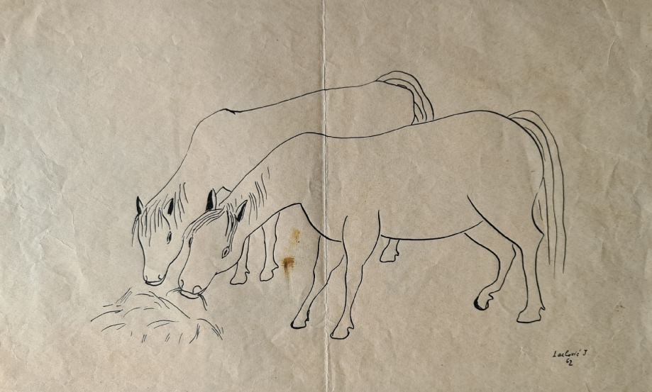 Ivan Lacković Croata "Konji" crtež tušem 22x40cm; iz 1962 godine;