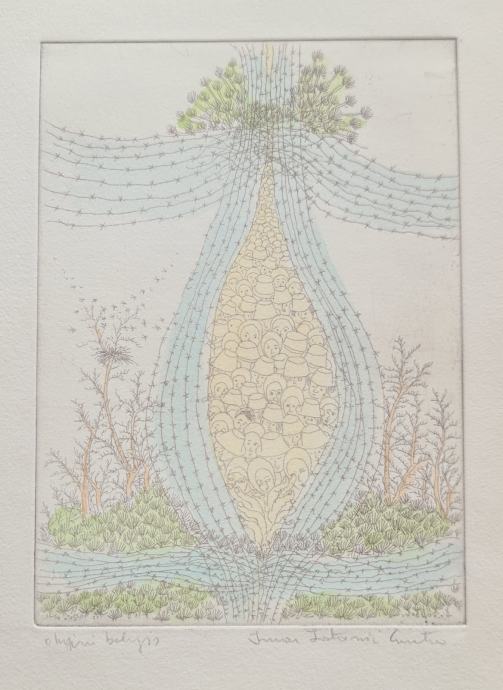 Ivan Lacković Croata "Narod u bodljikavoj žici"akvarel bakropis25x20cm
