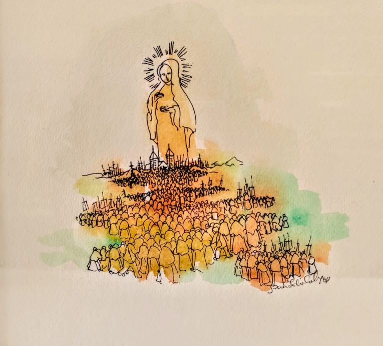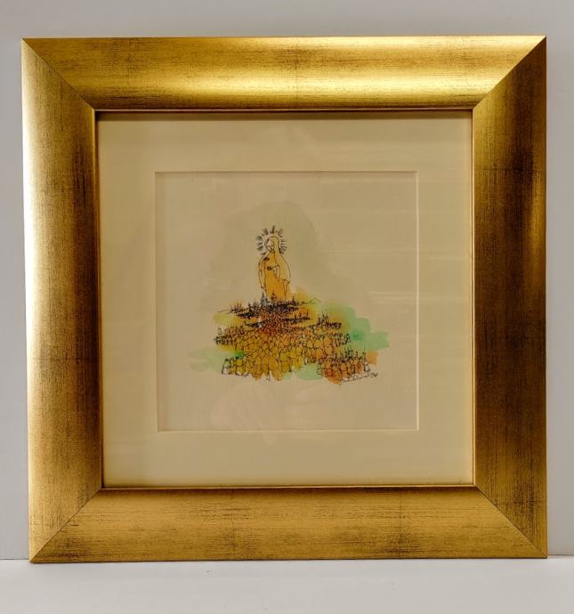 Procesija, tuš akvarel, uramljena, dimenzije sa okvirom 42x41 cm, uz sliku dobijete račun.