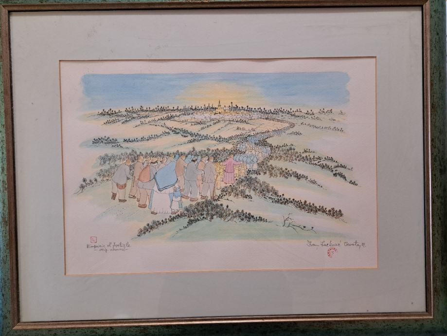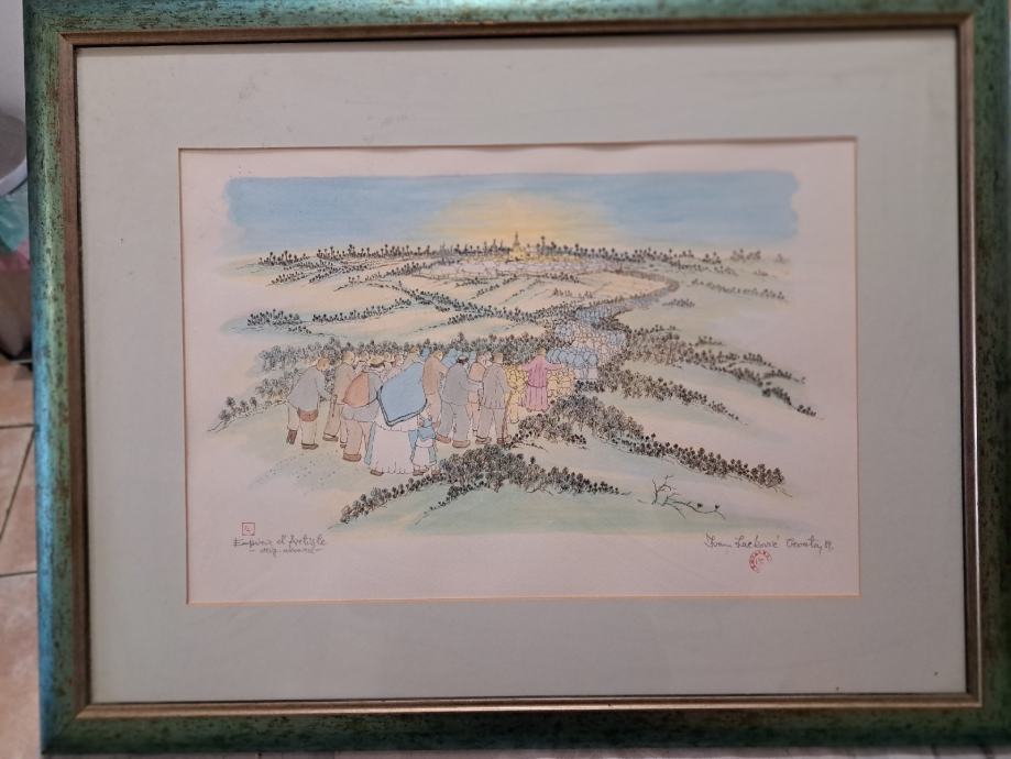 Akvarel,PROCESIJA, kupljeno prije 20 -tak godina .Odmah po kupnji uramljena.Grafika sa žigom i potpisom.