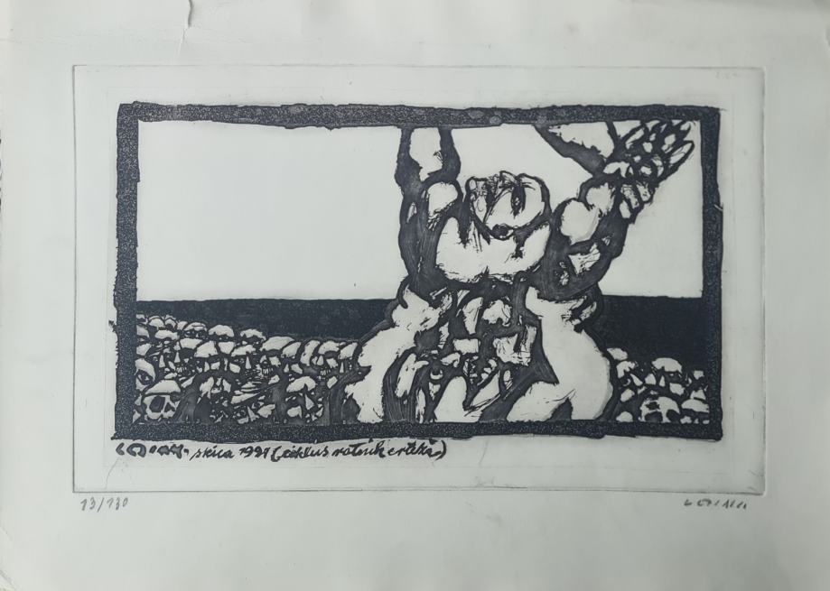 Ivan Lesiak "Ciklus Ratnik crteža 1991" bakropis 40x55cm; iz 1991 godi