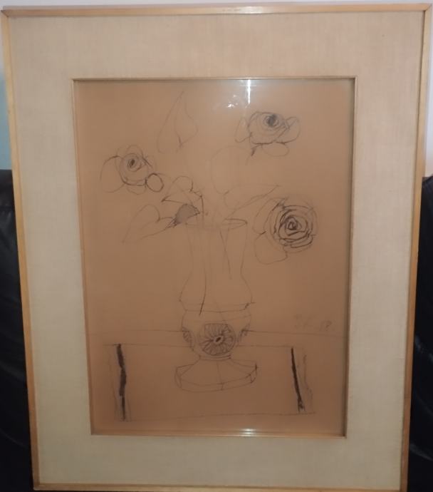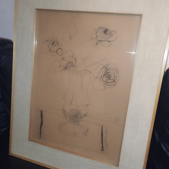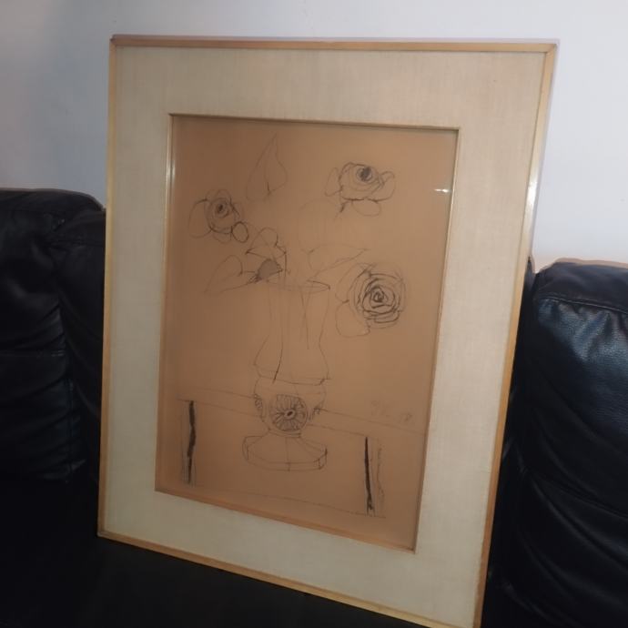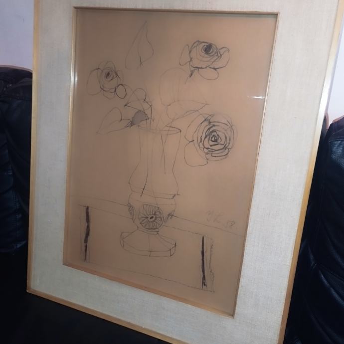 Crtež ugljenom iz 1958.g. Uramljeno u kvalitetan stari okvir. Dimenzije s okvirom 70x55cm (sam crtež 52x40cm).