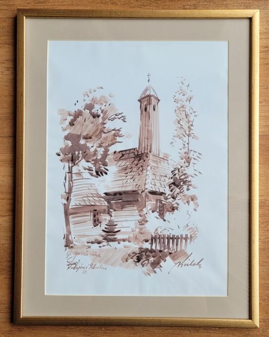 Prodajemo umjetnicku sliku Ivana Milat kist-sepija "Sveti Fabijan i Sebastijan u donjoj Gračenici "Slika je iz 1997 godine dimenzija sa okvirom 51x39 te za nju trazimo iznos od 300 eura.