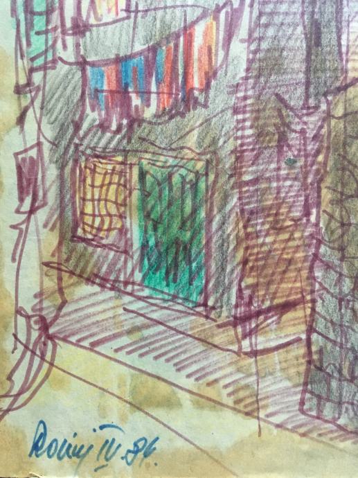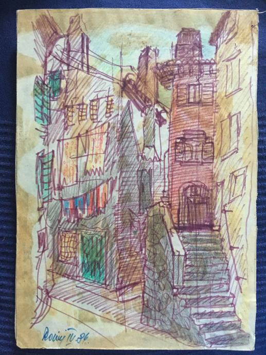 Tri crtežas morskim motivima (Rovinj, Njivice na Krku...) iz 80-tih godina akademskog slikara Ivana Pessija. DImenzije su cca 28x20cm. Na slici "Njivice" su oznake za boje pa pretpostavljam da je to studija za neku veću sliku. Cijena je za sve slike.