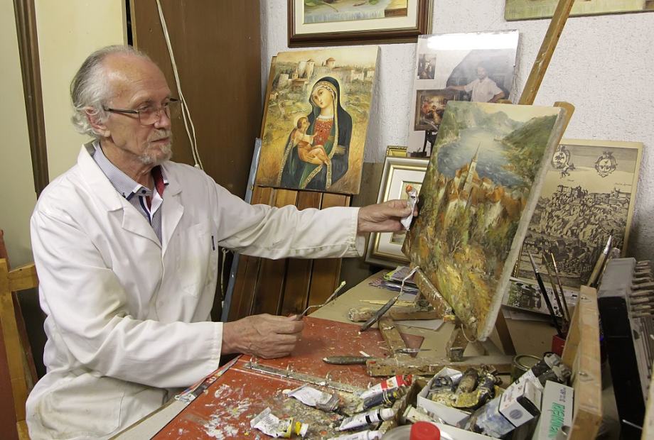 Omiljene teme njegovih slikarskih radova su primorski krajobrazi a omiljena tehnika ulje na platnu.