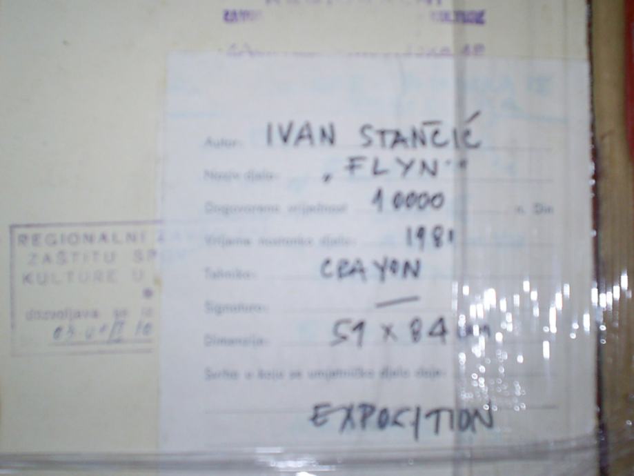 59x72, sa okvirom 64x77, 1981 g., certifikat, žig i dozvola tadašnjeg regionalnog zavoda za zaštitu spomeničke kulture za izlaganje u inozemstvu, Slika je bila izlagana u Studiju galerije Forum 82.g.