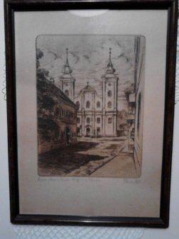 Župna crkva u Osijeku originalni bakrorez/bakrotisak iz 1930god dimenzije 37x27cm
