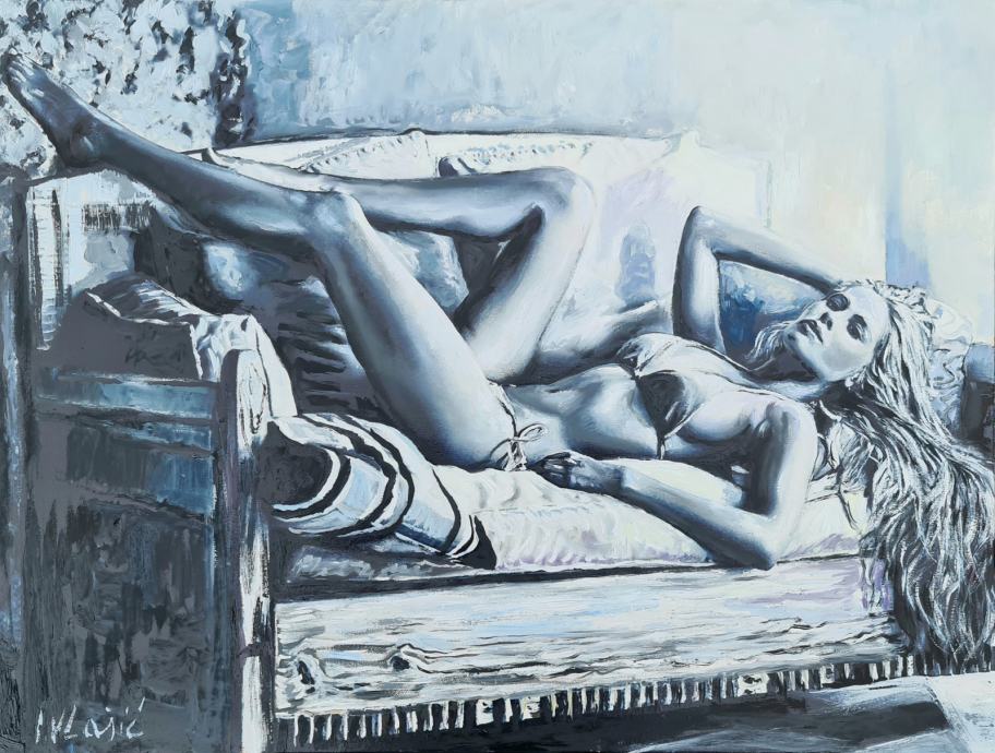 Ivan Vlašić "Djevojka na dvosjedu u sivom" ulje na platnu 60x80cm;
