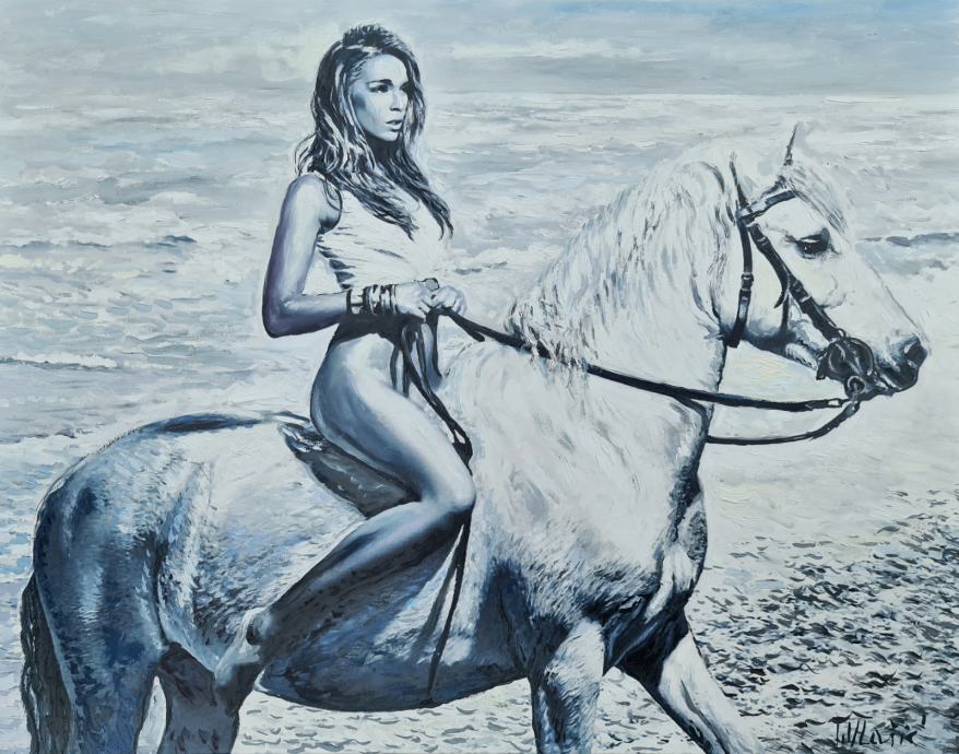 Ivan Vlašić "Djevojka na konju na obali u sivom"ulje na platnu 70x90cm