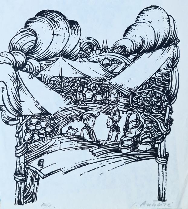 Ivica Antolčić "Šegrt Hlapić, zaljubljeni Zagreb" svilotisak 30x30cm;