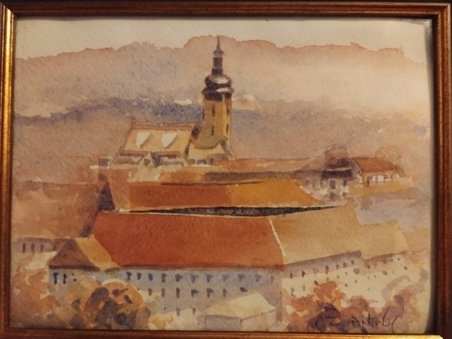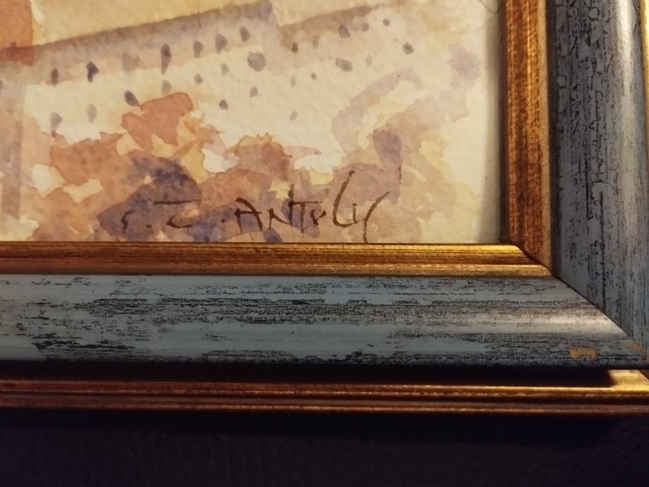 Akvarel hrvatskog slikara Ivice Antolića sa zagrebačkim motivom (Gornji grad). Uokvireno i ostakljeno. Dimenzije s okvirom cca 29x23cm.