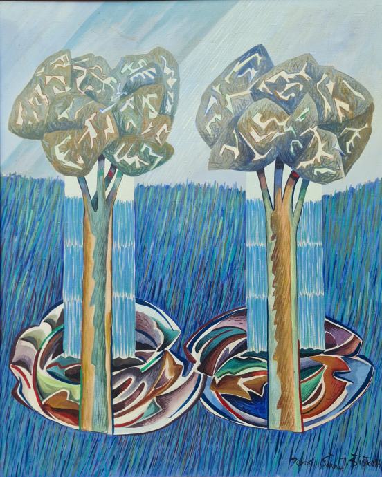 Ivica Šiško "Dva drveta" ulje na platnu 100x80cm; iz 1984 godine;