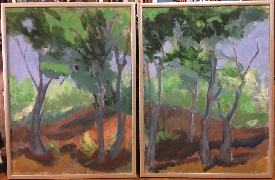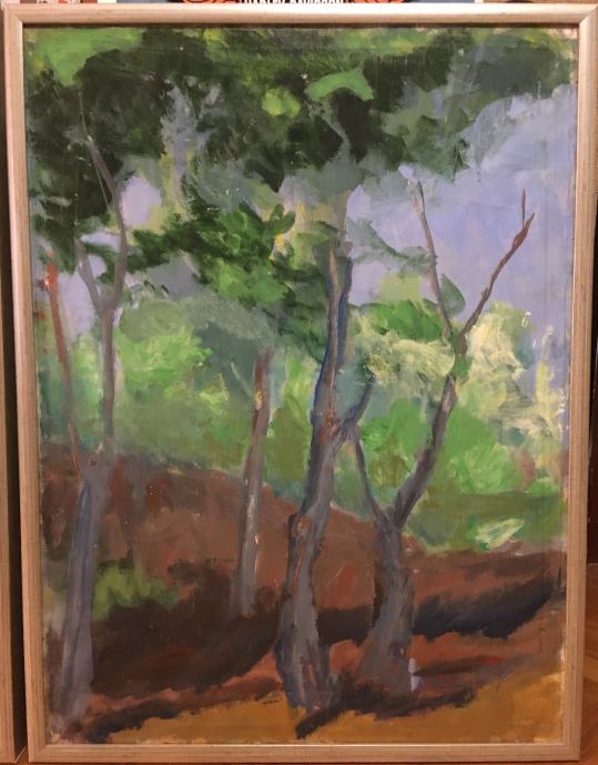Ulje na platnu s motivima Medvednice akademskog slikara i kriškog profesora likovne umjetnosti Ive Radoševića (rođ. 1903.). Galerijski uokvireno. Motiv je Medvednica - Zagrebačka Gora. Dimenzije slike su 82x62cm.