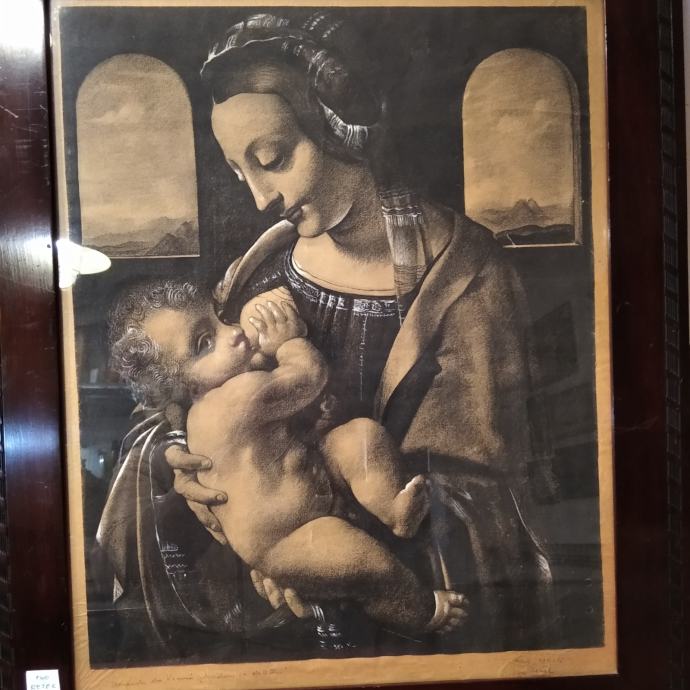 Ljepa slika podpisana Ivo Režek..madona s djetetom..Pariz 1924 g.....njegov boravak u Parizu i reprodukcije mnogih svjetski poznatih majstora