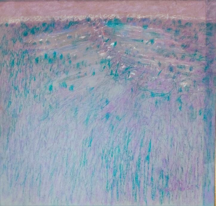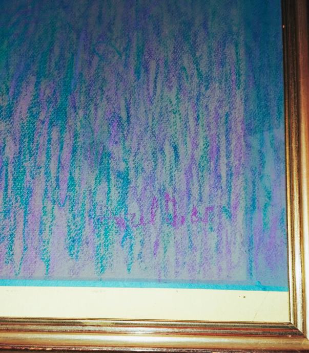 Pastel dimenzije 59/59cm (s okvirom, nedostaje staklo). Pejzaž. Akademski slikar.