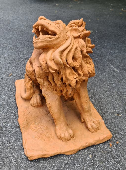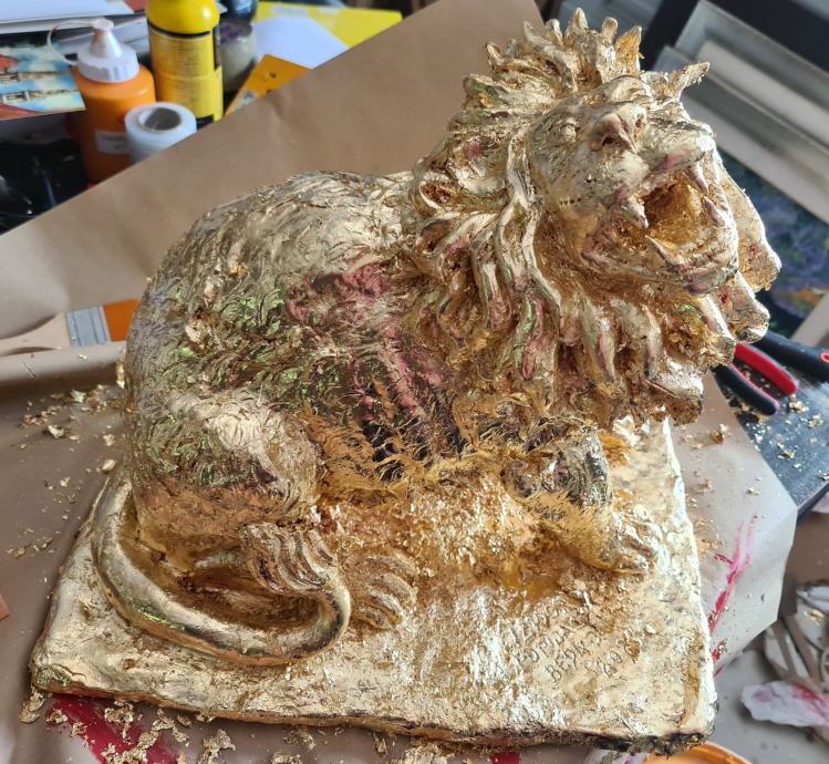 lav od terakote je pozlaćen, u prilogu slika prije a poslje fotka jos nije gotova jer trwebba staviti patinu i zastitu...i profesionalno uslikati da se vidi volumen...